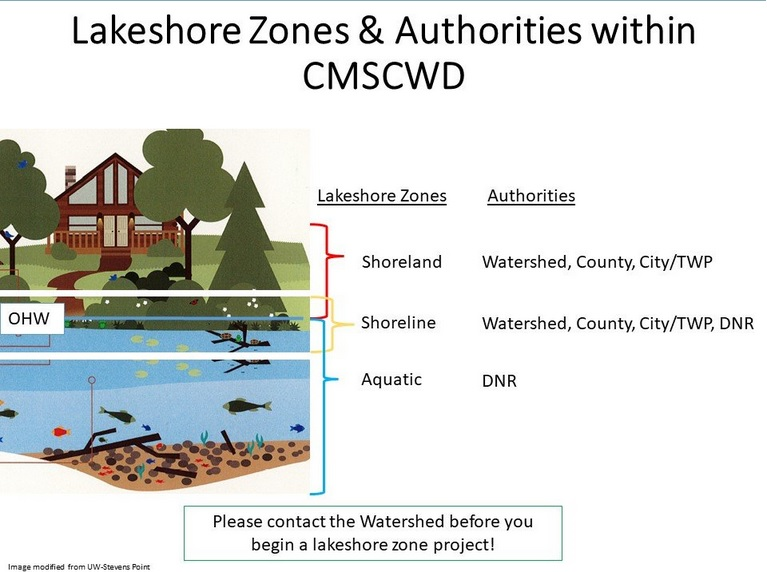 Please feel free to share a link to our website Rule page which contains the graphic I mentioned that illustrates the different lakeshore zones and entities with authority that need to review and provide approval to any shoreland development and shoreline alterations. As you can see there are many entities that oversee different but some overlapping aspects to lakeshore properties.